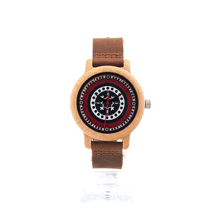Bobo Bird Valódi Fa Női Karóra - Bőr Szíj - Mintás