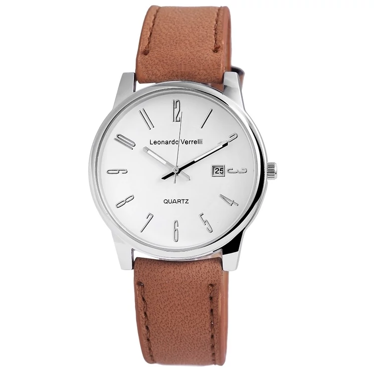 Leonardo Verrelli Férfi Karóra - Barna - Ezüst - Designbőr szíj