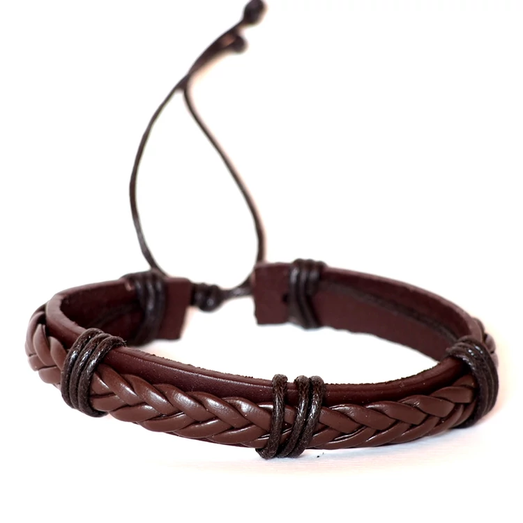 Sötétbarna Valódi Bőr Karkötő - Műbőr Fonat Díszítés